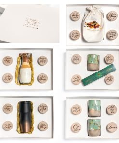Prie pakuotės pridedamas įmonės sveikinimas arba etiketė su logotipu. Pakuotė su emocionaliu užrašu „AKIMIRKA YRA DAUGIAUSIAI KO GALI TIKĖTIS IŠ TOBUYBĖS” dekoruota aukso spalvos folija. Pakuotė atrodo labai prabangiai, pakuotės konstrukcija dugnelis/įmautė.
