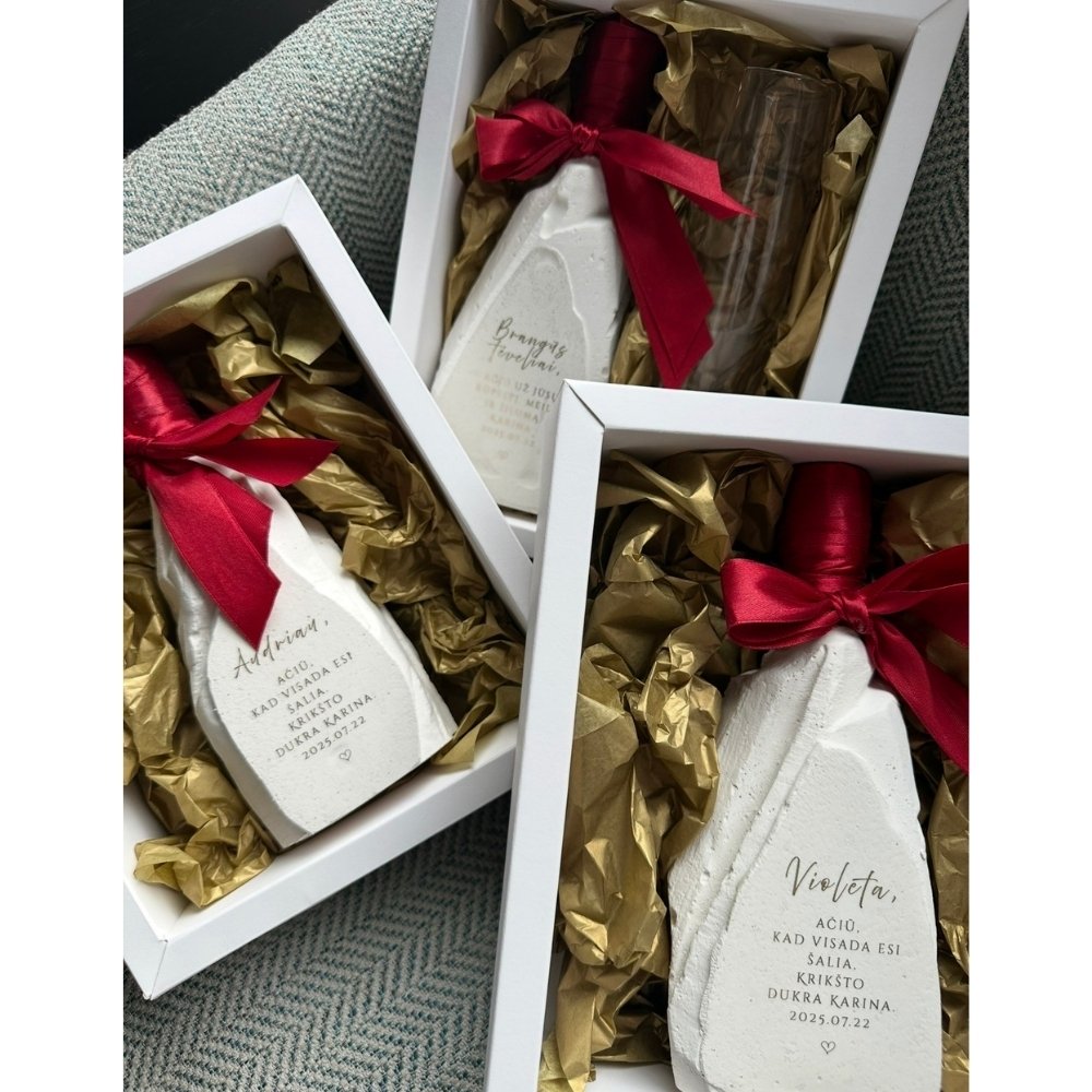 Personalizuokite savo dovaną – sukurkite savo unikalų tekstą. Galimybė atspausdinti tekstą, sveikinimą arba netgi įmonės logotipą padarys šią dovaną tikrai išskirtinę! Svarbu: ilgesnio teksto nebus galima atspausdinti ant dekoruoto butelio, tačiau mes galime paruošti sveikinimus vokelyje, jei norite ilgesnio sveikinimo.