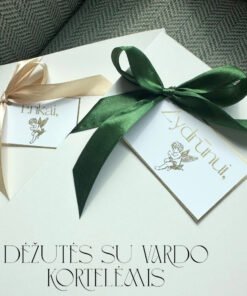 Pasirinkite ar reikalingas stilingas vokas rimtesniai dovanai. Jeigu pasirinksite su elegantišku voku, jį pridėsime šalia ir priderinsime spalvą prie juostelės, kad viskas derėtų. Į vokus dažnai dedami dovanų kuponai, bilietai, pinigai ir t.t.