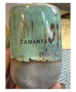 Rankų darbo stilingas puodelis lydės jaukioje akimirkoje.
