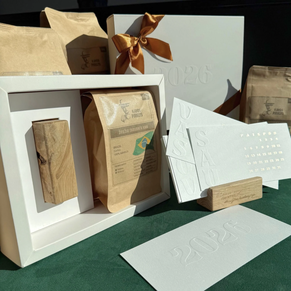 Atraskite išskirtinį stalo kalendorių su kava, kuris taps ne tik praktišku metų palydovu, bet ir rafinuotu dovanos sprendimu jūsų partneriams, klientams ar artimiesiems.