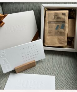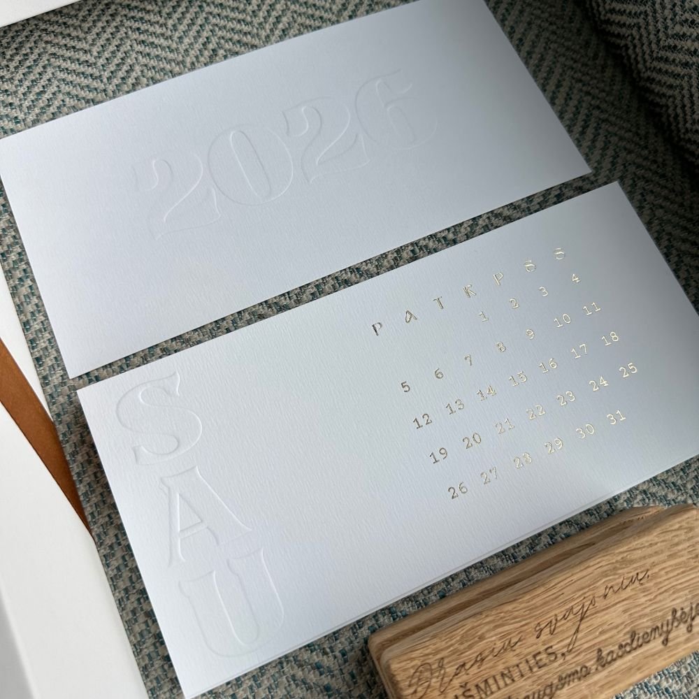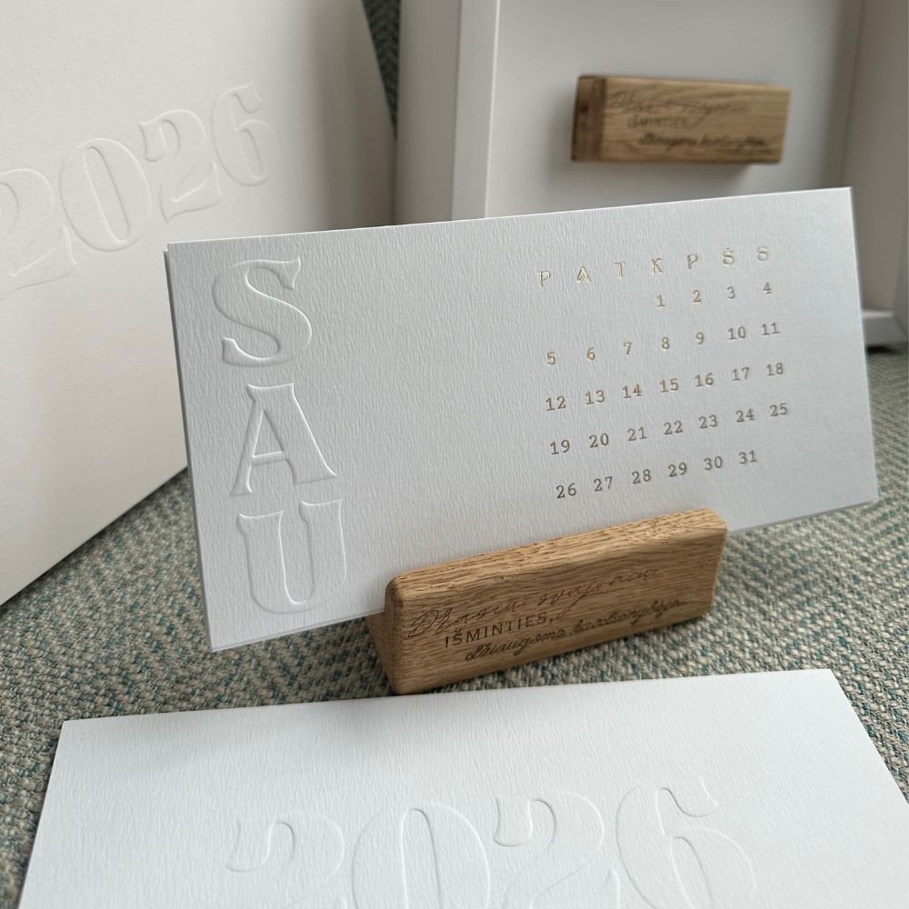 • Dovanos pakuotė standartiškai dekoruota subtiliu reljefiniu įspaudu 2026, taip pat yra galimybė personalizuoti pagal įmonės poreikius, su logotipu ar palinkėjimu (teirautis individualiai)
