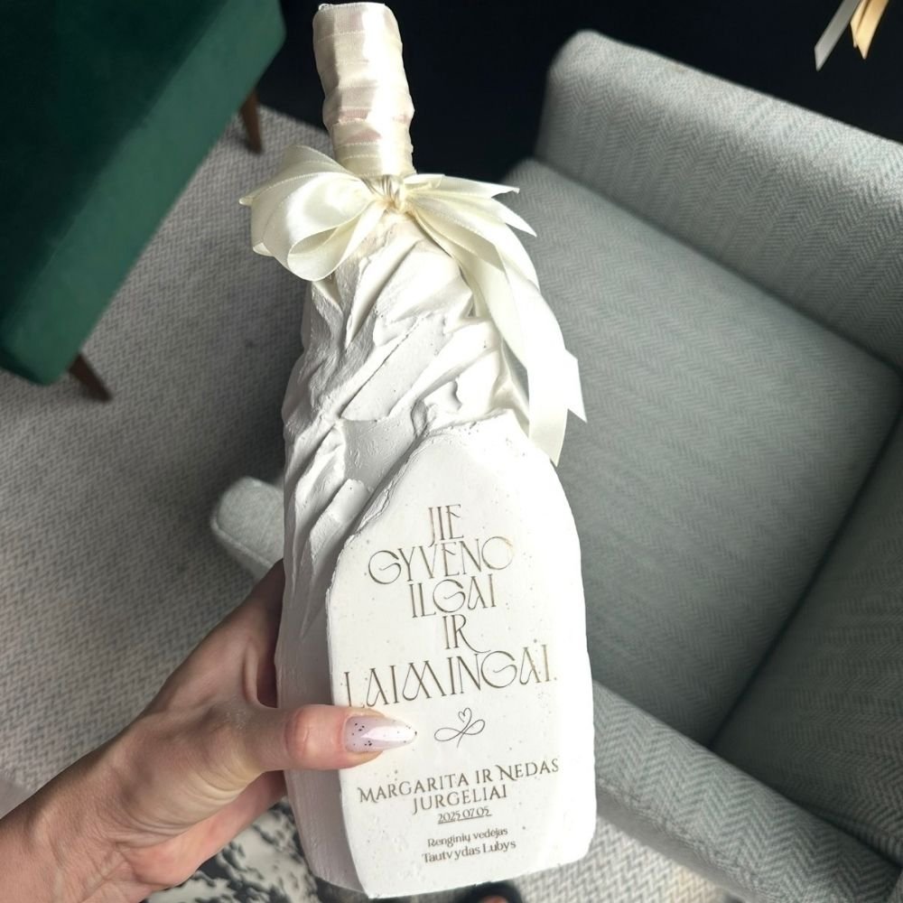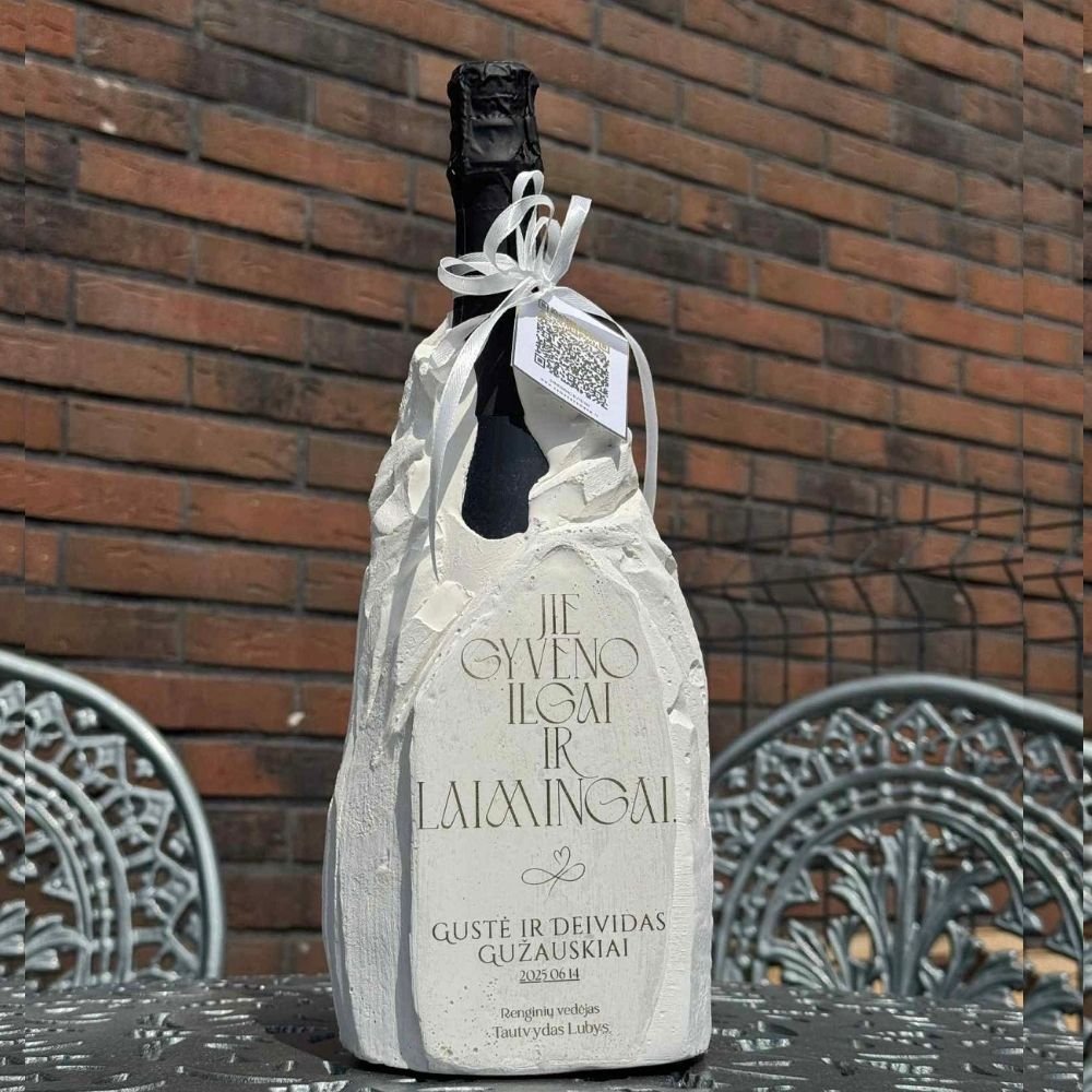 Personalizuokite savo dovaną – sukurkite savo unikalų tekstą. Galimybė atspausdinti tekstą, sveikinimą arba netgi įmonės logotipą padarys šią dovaną tikrai išskirtinę! Svarbu: ilgesnio teksto nebus galima atspausdinti ant dekoruoto butelio, tačiau mes galime paruošti sveikinimus vokelyje, jei norite ilgesnio sveikinimo.